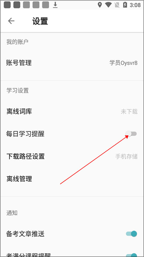 托福考满分app如何开启学习提醒