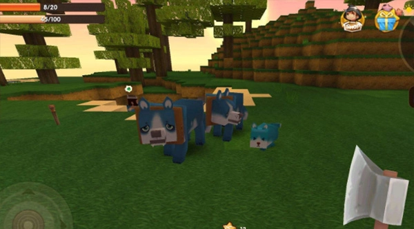 其次,这类游戏的核心玩法无疑是生存!开局阶段,你得先收集基础资源、制作简易工具,而砍树是重中之重。具体操作很简单:找到一棵树,把屏幕中心对准树干长按,等木块掉落时点击拾取,就能获得木材。用这些木材可以打造木剑、木斧、木镐等基础工具——木剑能防身,木斧和木镐则能分别加快砍树、挖矿的速度,让你前期收集资源的效率大幅提升,轻松领先其他玩家。 收集到足够材料后,别忘了用木剑猎杀小动物,这样既能拿到皮毛(后续可用来做衣服),又能获得生肉(前期重要的食物来源)。另外,多余的木材别浪费,建个工作台吧,有了它就能制作更复杂的道具了。