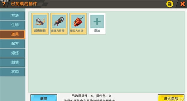 不过在创建插件包之前,我们得先制作一些插件才行,这里先简单做几个武器插件,再把它们添加到地图里: