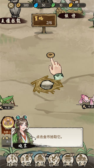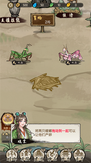 1、游戏开始时,玩家会获得两只初始螳螂,此时只需把其中一只螳螂拖拽到另一只的旁边即可。
