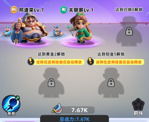 武将羁绊可以为全体武将带来生命值或攻击力的百分比加成,在确保单个武将具备足够强度的前提下,尽可能让同阵营的武将一同上阵,才能使整体战力达到最高水平。