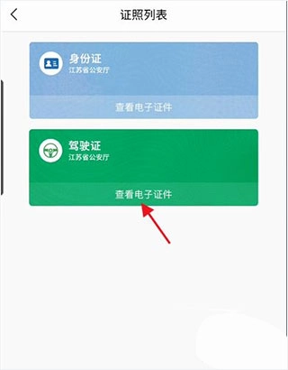 3、进入证照列表,找到驾驶证后,点击其下方的“查看电子证件”选项。
