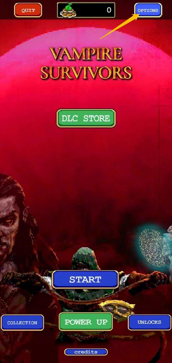 1、玩家进入游戏后,第一步需要点击界面上方的蓝色按钮【OPTIONS】。