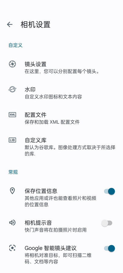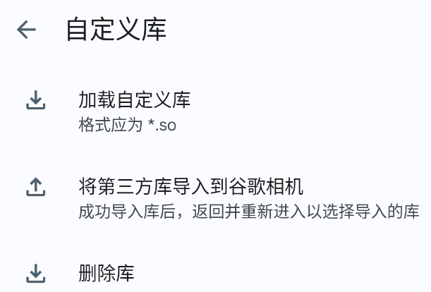 4. 打开更多设置,进入自定义库界面,把第三方库导入谷歌相机,挑选出你觉得成像效果合适的库并完成导入。之后返回,再次进入更多设置里的自定义库,选择加载自定义库,找到刚才导入的那个库进行加载。