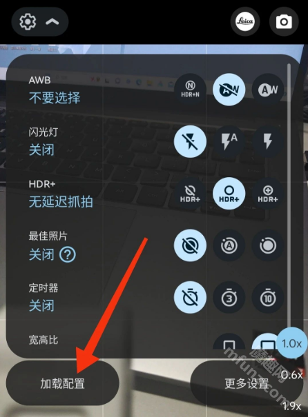 3. 启动谷歌相机并完成配置。所有安装步骤结束后,即可打开谷歌相机。首次启动时,根据提示授予所需权限即可。进入谷歌相机后,点击右上角的设置图标,选择加载配置选项,接着选中之前准备好的配置文件,最后点击加载按钮完成操作。