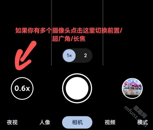 左下角的这个圆形图标,作用是让你切换前后置摄像头。