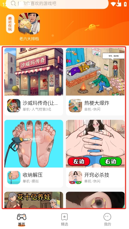 3、在主界面和精选页面能够看到推荐的游戏,你可以通过滑动屏幕来浏览各类不同类型的游戏。