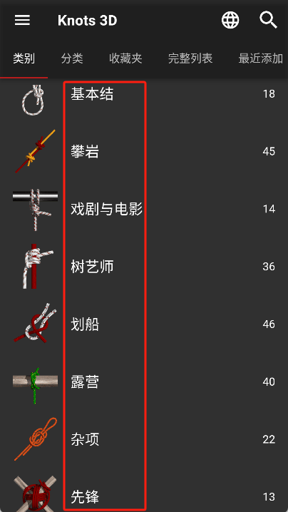 2. 在类别中选择我们需要学习的结绳类型。