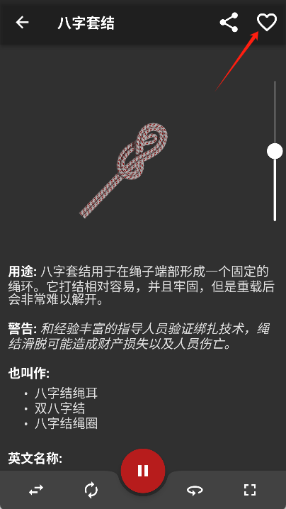 5. 点击右上角的爱心图标,就能把你喜欢的打结方式加入收藏夹,这样下次使用时会更方便。