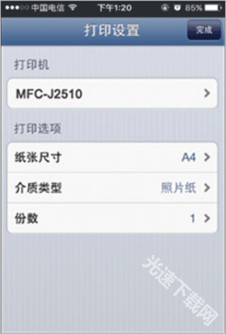3、挑选打印机,明确纸张的尺寸、纸张类型以及打印页数,接着点击完成;