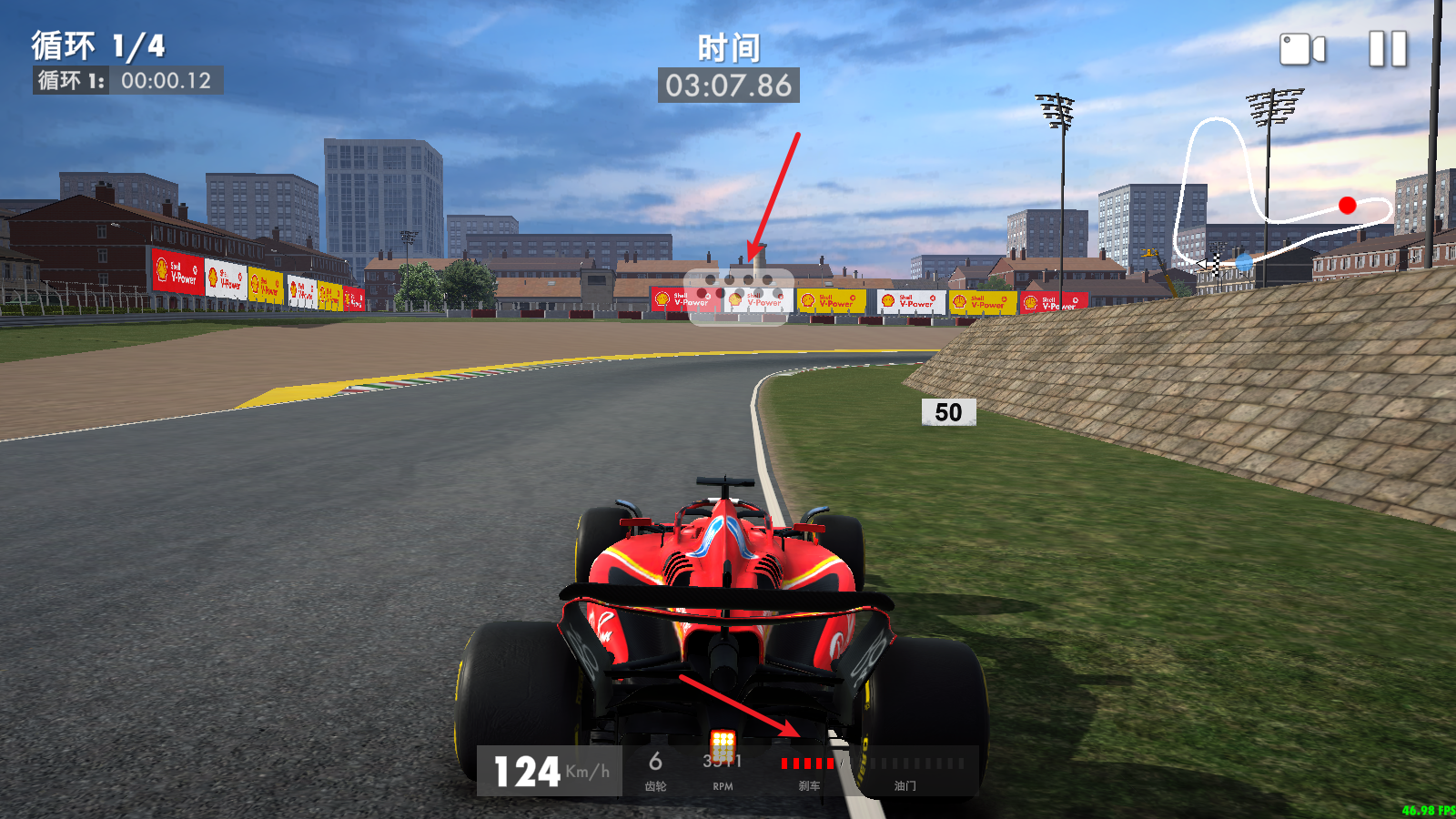 3、点击屏幕中间即可刹车,降低你的速度。