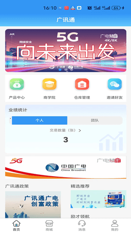 推广商品展示模块可供商家展示自身商品信息,涵盖商品图片、描述、价格等内容,助力商家吸引更多潜在客户。好友邀请海报模块则为用户提供分享与邀请好友的功能,用户能生成邀请海报并分享给亲友,邀请他们一同使用广讯通,以享受更多优惠和福利。