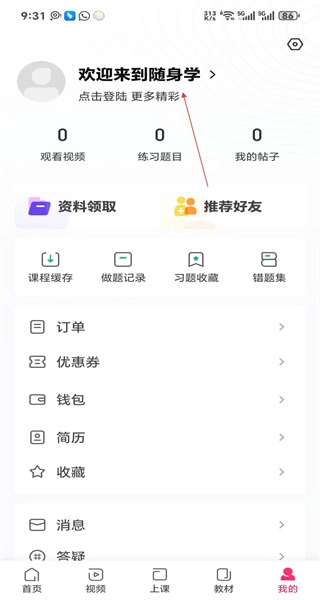 1、启动软件后进入首页,这里包含公开课视频课等功能板块,还设有新人福利包和今日直播课入口,点击“我的”选项即可进入个人中心页面。