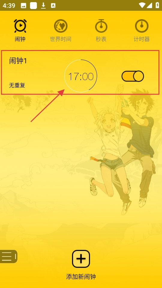 1、进入二次元闹钟,点击添加新闹钟。