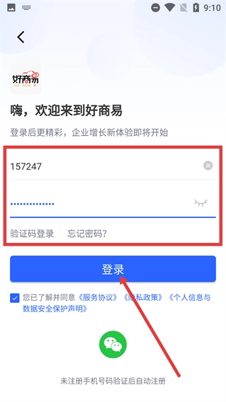 4、在登录页面输入手机号和密码,勾选相关协议后,点击【登录】按钮,完成账号登录流程,就能使用平台功能了。
