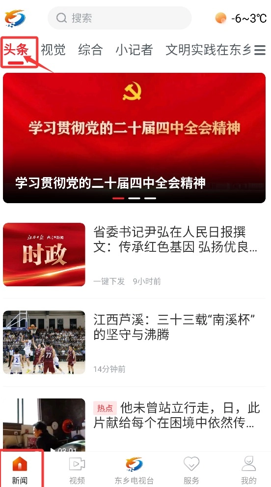 1、打开品质东乡应用后,您能在新闻头条板块查看当天最关键的本地要闻和政务动态信息。