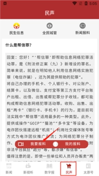 3、要是玩家有爆料需求,也能点击下方的民声板块,接着选择【我要爆料】选项,把相关信息填写完整就可以了。