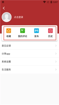 4、除此之外,用户也能点击主页右上角的人像图标,进入该页面后,即可查看自己收藏、评论以及发布过的新闻或视频内容。