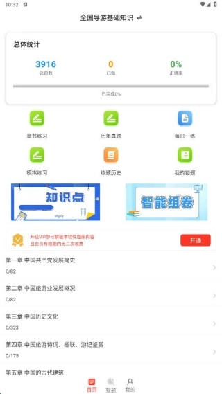 2、在首页,我们可以看到章节练习、历年真题、每日一练、模拟练习等答题板块。