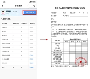 2、完成身份信息核验后,就能查看儿童疫苗接种的完成情况。点击“查验评估报告”,进入“廊坊市儿童预防接种情况查验评估报告”页面,此报告打印出来后,和接种单位开具的纸质版评估报告具有同等效力。长按报告可将其保存到相册,之后就可以打印该报告,再和儿童预防接种证一同提交给学校、幼儿园等机构进行查验。