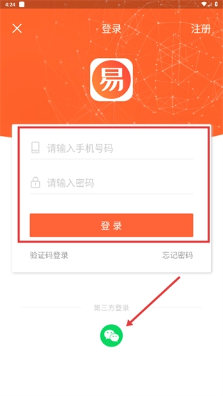 在登录界面,可选择【微信】第三方登录方式,快速完成账号登录操作。