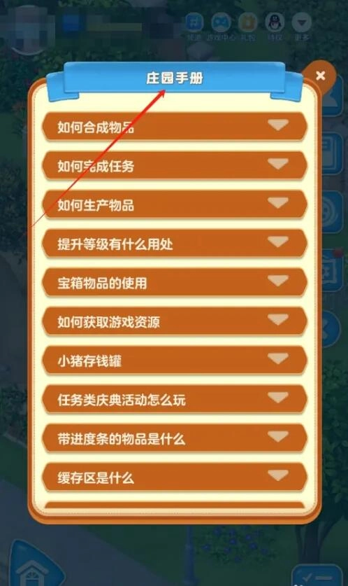 2、点击界面右侧的从上往下看的脾压侵第二个图标,进入到【庄园爬泛手册】界面。