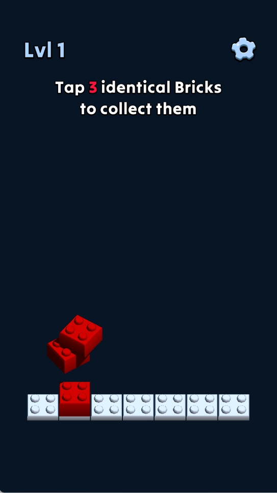 2、玩法是砖块匹配消除,精准配对三块相同砖块来消除,释放被围困砖块推进关卡。