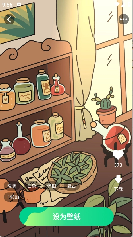 3、这款免费高清锁屏壁纸手机版软件支持壁纸浏览功能,壁纸会按类别展示,还设有壁纸合集板块,点击“心”形图标就能收藏自己喜欢的墙纸。
