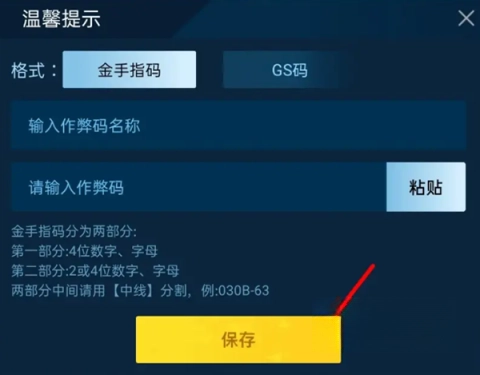 5、成功输入后,点击保存按钮,开启专属于你的金手指时刻。