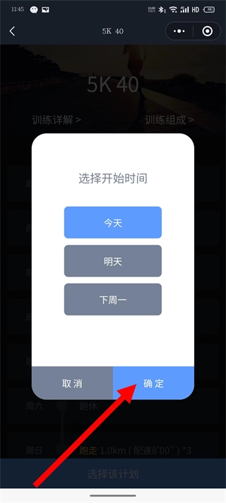5、选择开始时间后,点击确定,完成训练计划选择。
