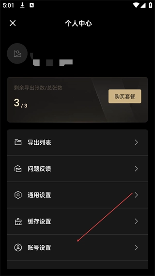 2、在个人中心页面,选择“账号设置”选项,跳转至账号设置界面。