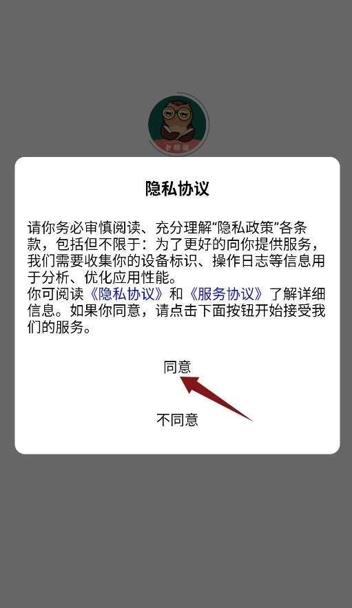 1、首次启动应用需点击确认弹窗协议,同意后方可进入登录界面。
