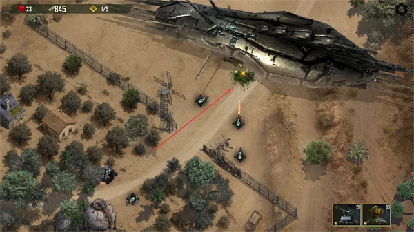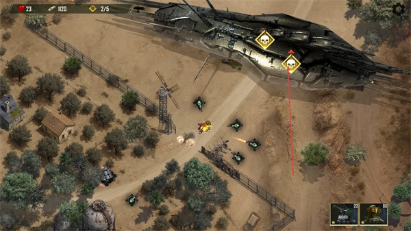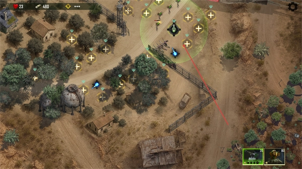 1、在战场部署单位,利用建筑与地形,瞄准敌方目标发起攻击,积累资源推进防御。