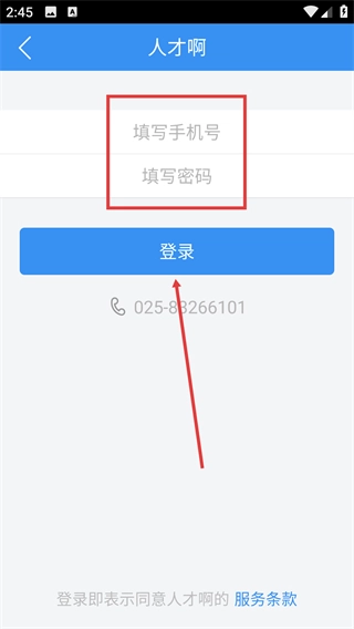 1、先在【填写手机号】处输入手机号,再在【填写密码】处输入密码,之后点击蓝色的【登录】按钮,就能完成登录操作了。