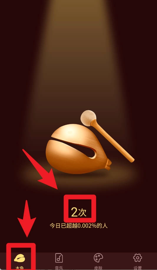 1、进入木鱼界面后,可以轻松点击木鱼进行敲击,每次敲击次数都会被自动记录,帮助你养成习惯。