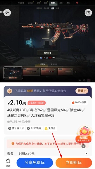 4、在账号详情页面,点击立即租玩按钮,即可完成该账号的租赁流程。