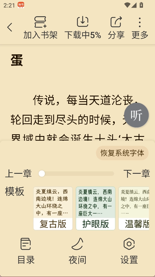 5、多样阅读模板:提供与自定义两种阅读样式选择,用户可根据个人喜好调整排版、背景等细节。