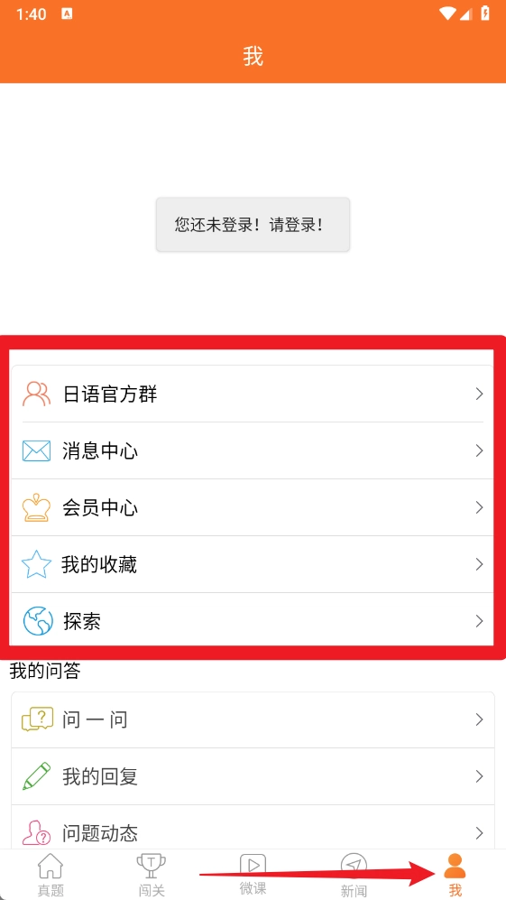 6、在我的页面中可以进入日语群、消息中心、会员中心、收藏及探索等功能,便于个性化管理。