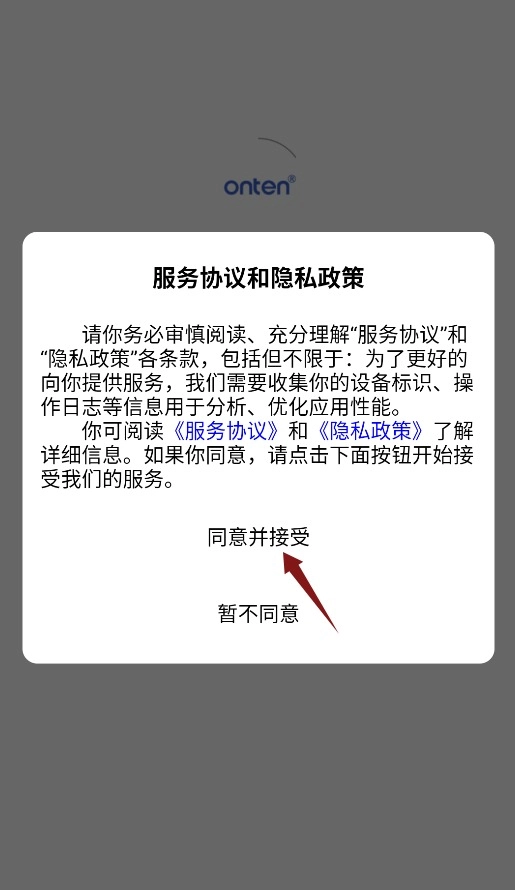 1、首次启动应用需点击同意服务协议和隐私政策,确认后方可进入登录界面。