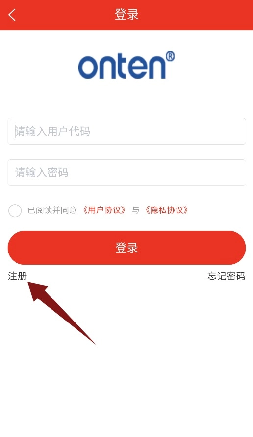 2、在登录页点击左下角“注册”按钮,即可跳转至信息填写页面。