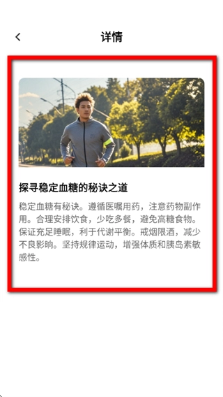 3、在详情页面,查看该文章的具体内容,学习血糖管理相关的健康知识。