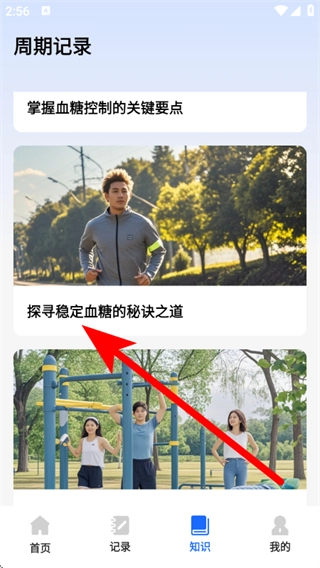 2、在知识页面,点击选择目标健康文章,进入文章详情页面。