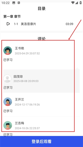 4、还可以查看【评论】区,看到其他用户的学习状态。