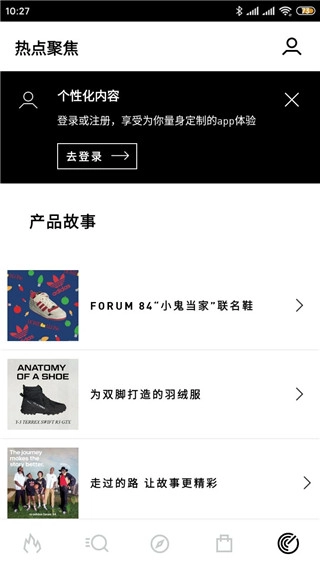 5、点击热点聚焦,可以登录注册,查看产品故事等。