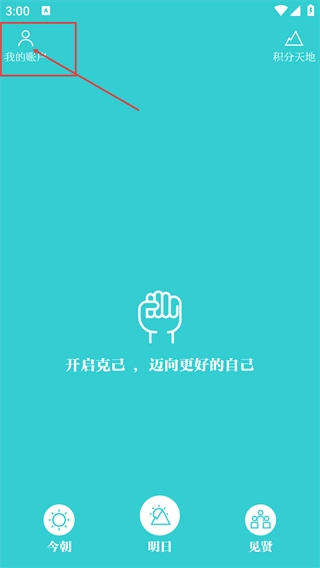 1、点击界面左上角的【我的账户】入口,可进入账号操作流程,该界面还设有【今朝】【明日】【见贤】等功能选项。