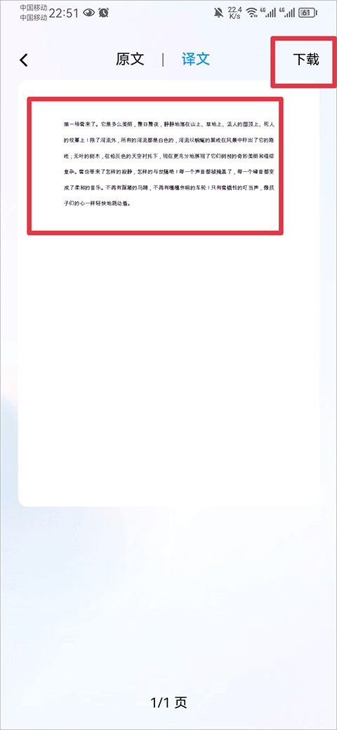 5、最后系统就会为你自动翻译成译文啦,点击下载按键还可以将译文下载下来