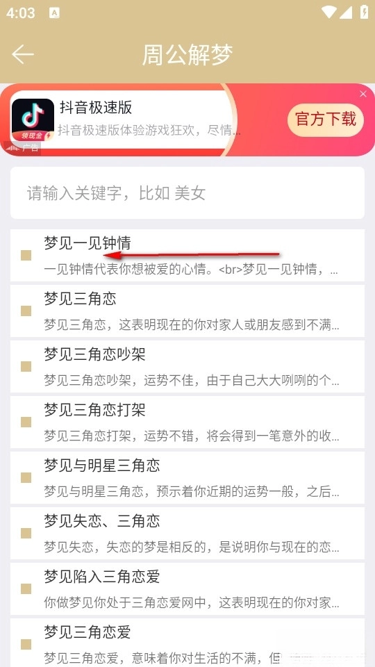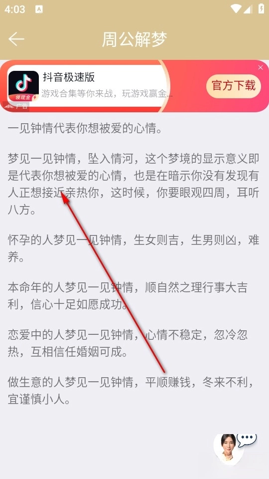 《周公解梦》是一款能够通过梦境来解析占卜的软件,我不仅能够在这款软件中查询到许多梦境的经典案例并查看解析,如果有未录入在软件中的梦境,我们可以询问这款软件的解梦AI,能够帮助我们从星座、运势以及八字等方面帮我们进行分析解梦以及生活建议,是一款很好用的运势占卜软件。