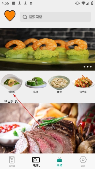 2、在菜谱页面点击【创意菜】分类选项,进入创意菜列表页面。