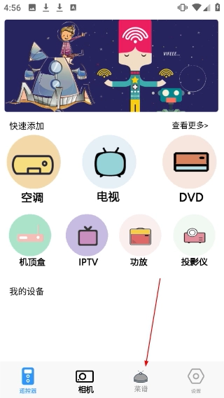 1、在万能遥控器页面,点击底部的【菜谱】选项,即可进入菜谱页面。