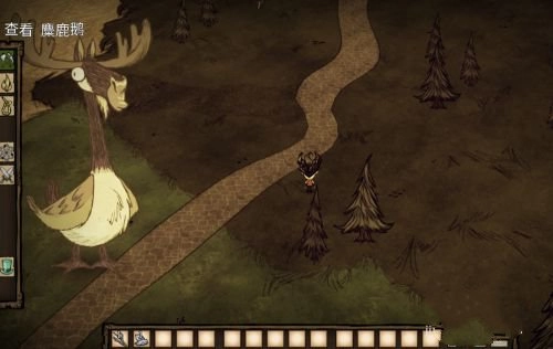 前期收集草、树枝、木头各一组后,就可以沿着大路去探索了,路上遇到燧石和石头可以顺手捡起来,记得把看到的浆果或者一些萝卜也采集了。